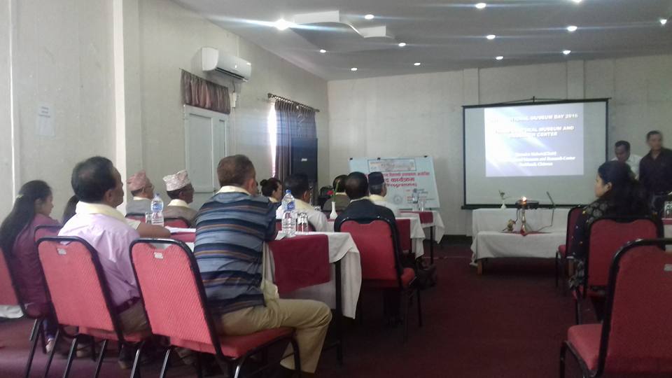 Nepal Museum Association (NMA) celebrated the International Museum Day on May 22, 2016 in Lalitpur, Nepal. The former Vice Chancellor Prof. Dr. Tri Ratna Manandhar and acting UNESCO representative to Nepal jointly inaugurated the program, formally. The civil society, museum lovers, museum professionals, professors, journalists, heritage conservators were among the participants.